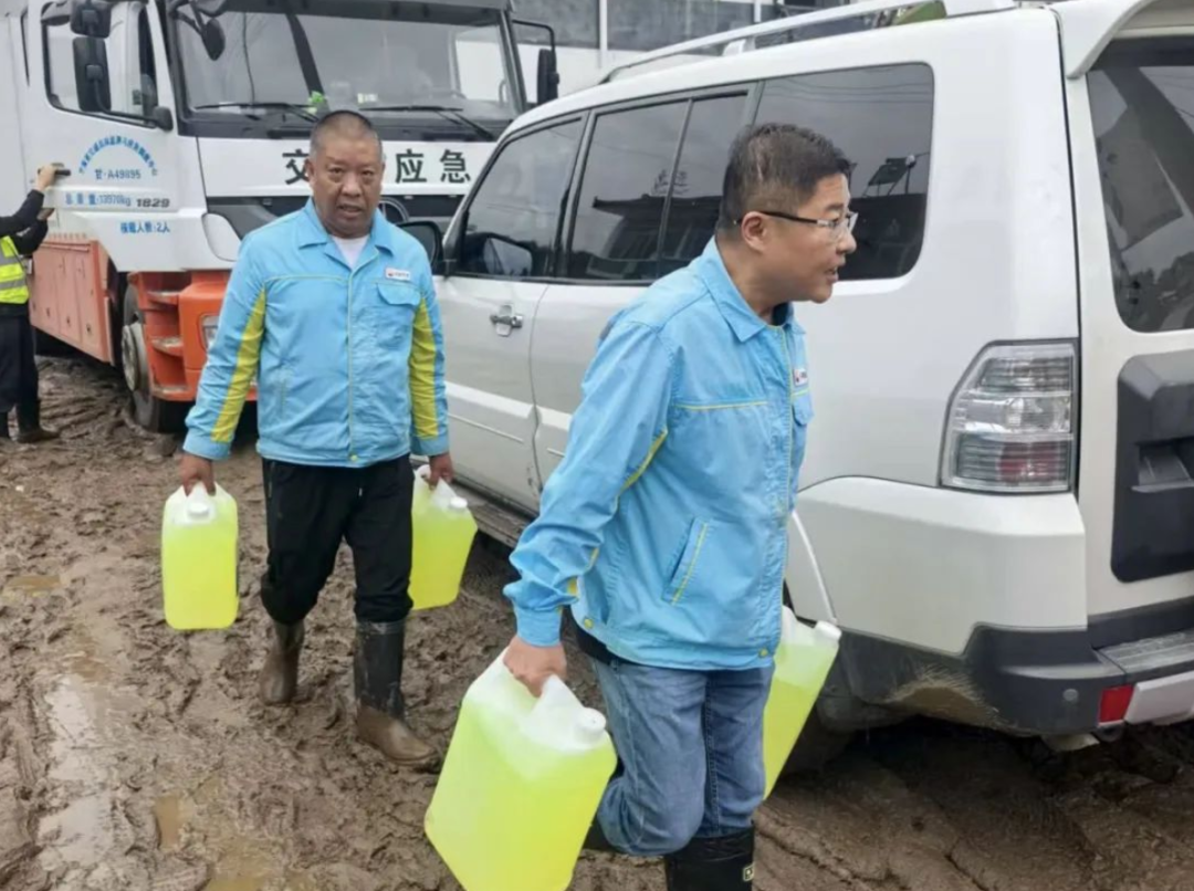 中國石油國家危險化學品應急救援蘭州石化隊緊急集結30名救援隊員和6輛搶險救援車,攜帶200套救援物資及液壓救援頂桿、生命探測儀、無人機等專業設備,向榆中災區緊急馳援。8月8日17時,蘭州分公司8名黨員組成“救援先鋒隊”,攜5噸油品及礦泉水、方便面等應急物資,馳援災區。“救援先鋒隊”克服重重阻礙,歷時7個小時后,將第一批油品成功送到了救援現場,并立即為搶險救援車輛、機械和發電機等設備加注燃油,爭分奪秒助力打通搶險救災生命線。