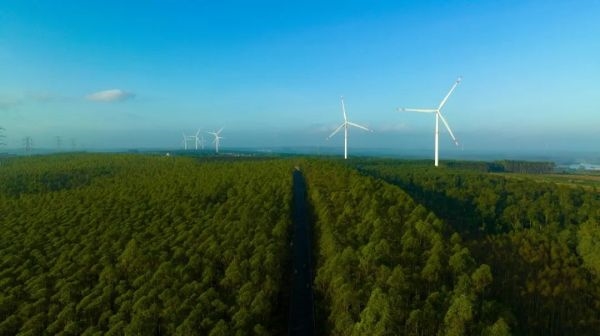 在中國大陸最南端的雷州半島,雷林公司龍門林場分公司連片的桉樹林一望無際,連綿起伏的林海上風車悠悠轉動,仿佛在與藍天白云講述綠美雷林和綠色能源的故事。秋日,遠離城市,赴一場森林康養之旅,去看看風車和森林的約會,必將讓您的心靈更加充盈博大。