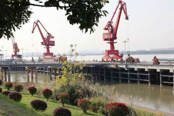 深秋的中林華中港碼頭水清岸凈,景色迷人。遙遙望去,岸線上栽植的喬灌木,不同于春夏的滿目蔥蘢,樹葉的深紅、金黃勾勒出碼頭秋韻的五彩斑斕,形成四季皆有景,四季景不同的生態畫卷。