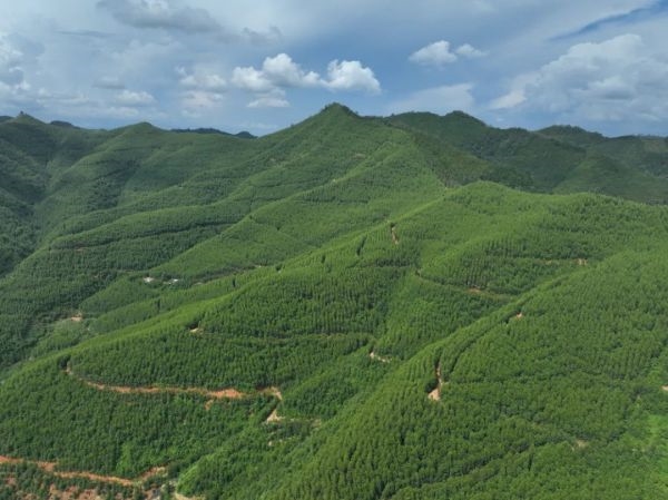 歲月更迭,景致流轉,鳥瞰林地,漫山遍野的新綠隨風擺動,鋪滿高低山巒,好似一幅翠綠的錦緞。天高云淡、滿目疊翠、層林盡染的秋日美景背后,是中林廣西集團耕耘國家儲備林建設的無悔付出,更是用“造綠”詮釋生態文明的責任擔當。