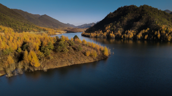 秋天的湖面似鏡,宛如一幅富有詩意的畫卷。落葉松在風的吹拂下逐漸改變顏色,從翠綠到金黃,季節就像調色板,在山野上演一場只屬于秋天的視覺盛宴。