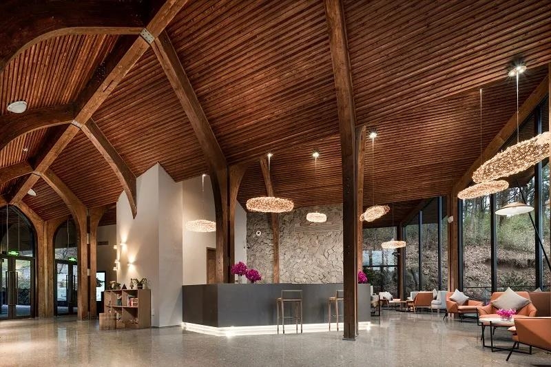 森林木屋是度假區內集住宿、休閑、會議、休養及體驗為一體的高端度假酒店,共36棟單體建筑,建筑面積達到5000多平方米。建造初期,就注重將綠色、生態、環保等理念融入酒店的各個方面,在采光、外墻及屋面建筑、管道設計等環節充分體現了低碳節能的相關技術。