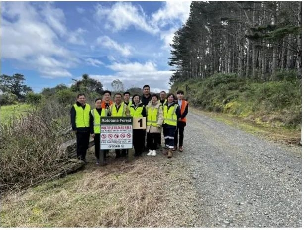 8月6日,調(diào)研組一行前往中林新西蘭公司。在新西蘭北島的Rototuna林地,調(diào)研組實地踏查森林資源經(jīng)營及風電項目落地情況,詳細了解林地管理、采伐作業(yè)、生態(tài)保護、清潔能源利用及可持續(xù)發(fā)展等方面的具體舉措。調(diào)研期間,外部董事對派駐新西蘭的中林員工表示親切慰問,并充分肯定他們在海外一線的辛勤付出,勉勵大家繼續(xù)發(fā)揚拼搏精神,為集團國際化發(fā)展貢獻力量。